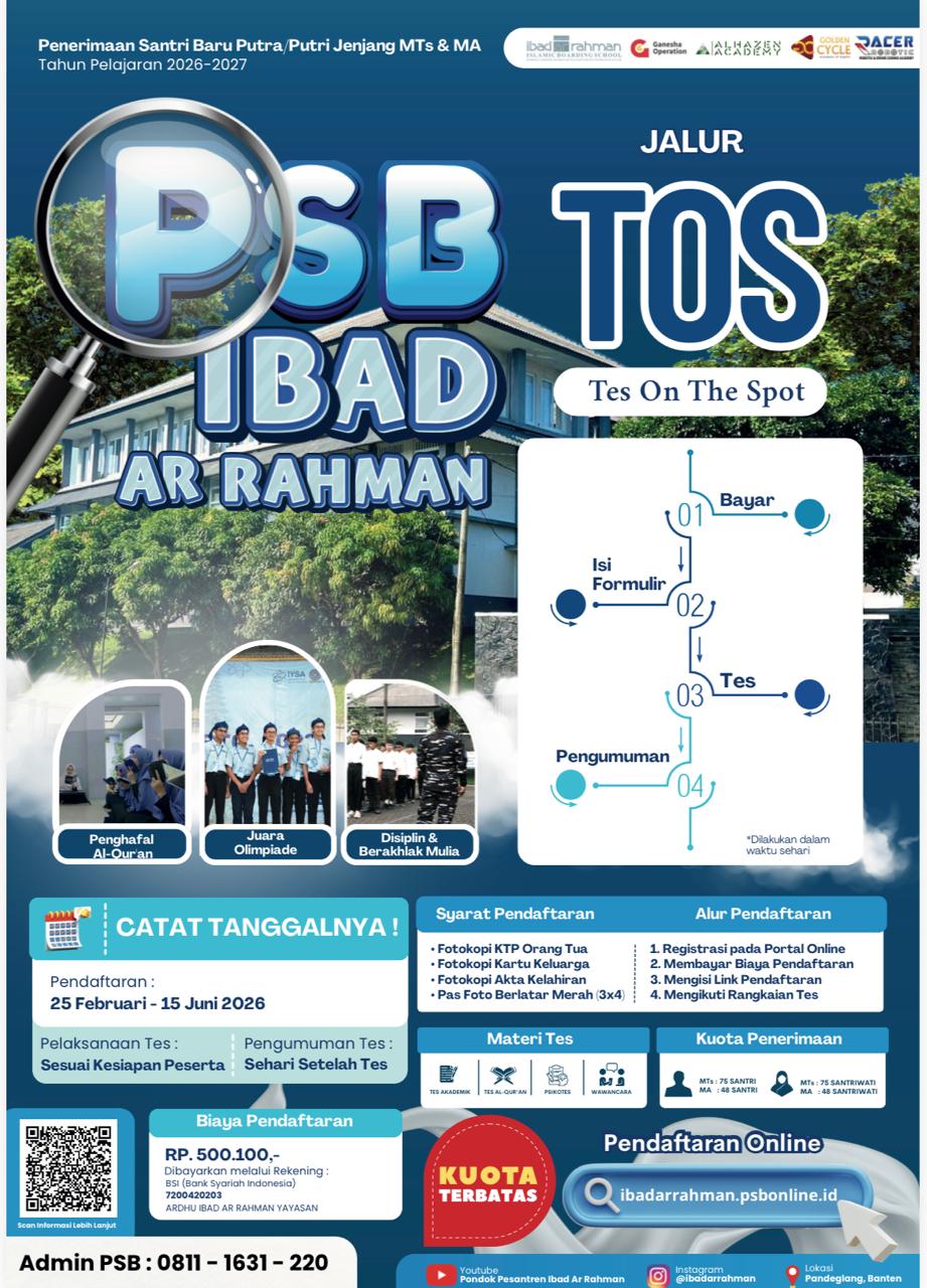 Ibad Arrahman Islamic Boarding School menyediakan kuota santri baru tahun ajaran 2026-2027 sebagai berikut: